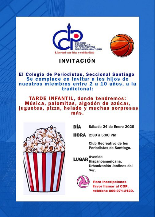 La Seccional Santiago del Colegio Dominicano de Periodistas anunció este miércoles la celebración de su tradicional Tarde Infantil, que podrán disfrutar los hijos de sus asociados.
