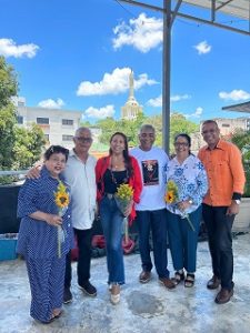 Periodistas, gestores culturales y representantes institucionales junto al director de la Casa del Caribe de Santiago de Cuba.