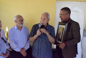 Explica que la entrega oficial fue hecha en ocasión del natalicio número 93, que celebrara el pasado día 6 de los corrientes, y aprovechando el escenario de la Copa Independencia de Dominó, realizada por el Club Recreativo el 22 de los corrientes, que contó con la participación de los diferentes gremios de la comunicación de Santiago de los Caballeros.