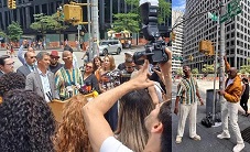 El evento, realizado justo al lado del escudo de Colombia en la Avenida Las Américas, en pleno corazón de Manhattan, contó con la presencia del cónsul colombianoMiguel González, autoridades locales, líderes comunitarios, los integrantes de la orquesta salsera y representantes del panorama musical latino.